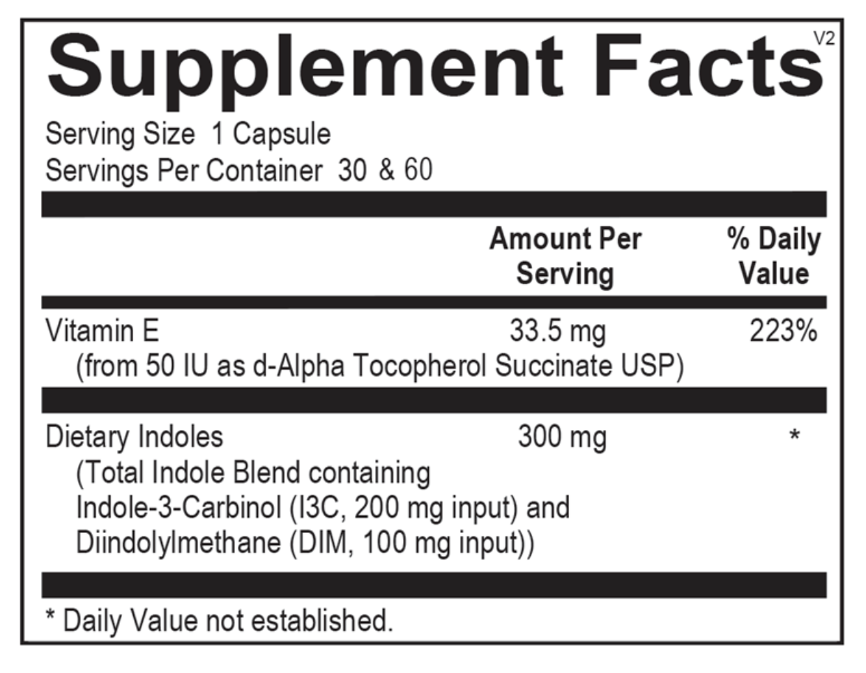 EstroDIM® is a targeted supplement that combines the synergistic benefits of the cruciferous vegetable metabolites indole-3-carbinol (I3C) and 3-3’-diindolylmethane (DIM) to support balanced estrogen metabolism.